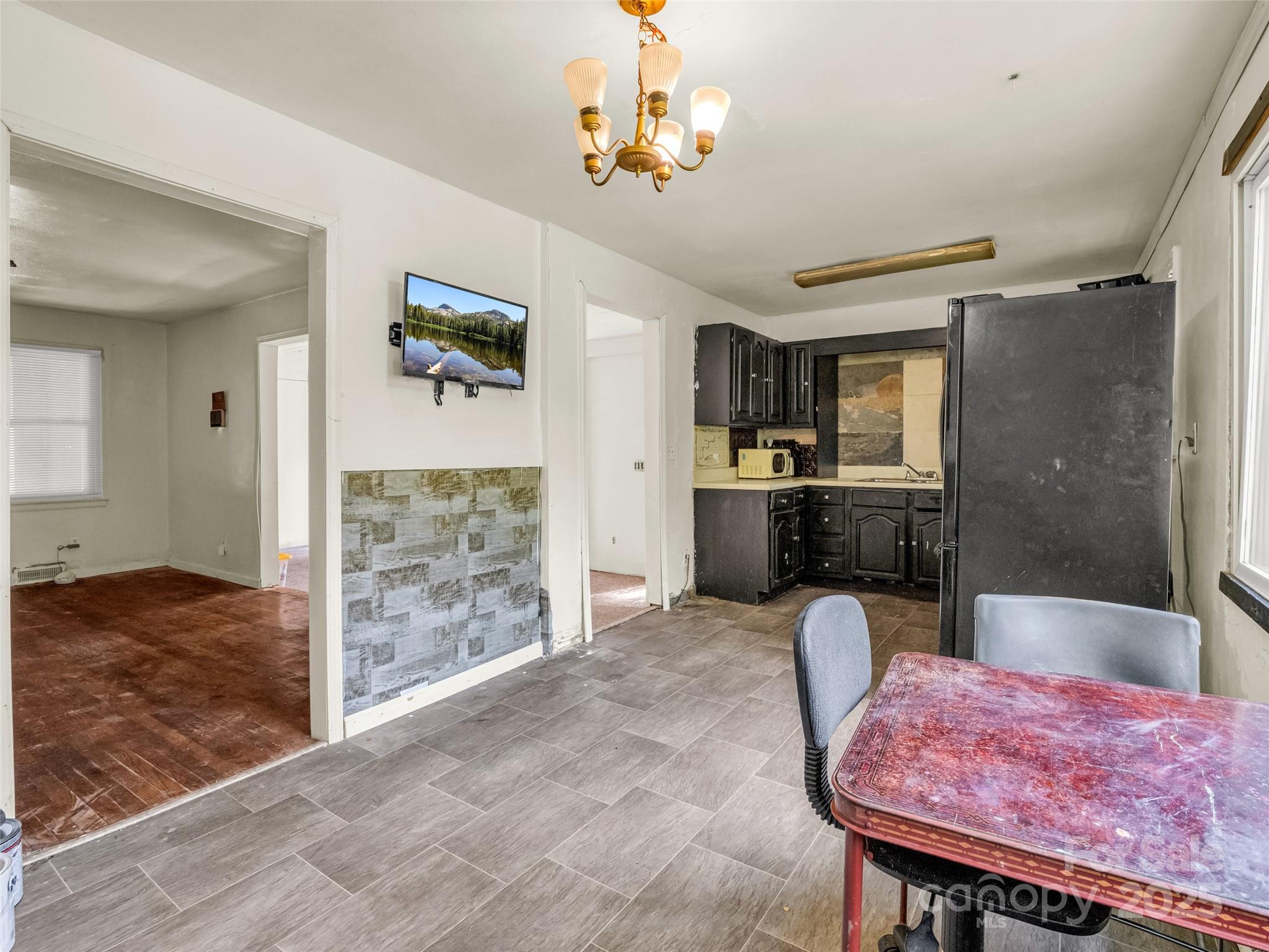 Packed with potential and full of character, this handyman special is the perfect opportunity for buyers looking to add value through updates and personal touches. This 2-bedroom, 1-bath home features a walk-out basement, which could be used for storage or converted into additional living space. In the bright kitchen, large windows frame serene winter views. A durable metal roof provides long-term peace of mind, while the covered front porch offers the perfect space to step out of the elements. A little bit of flooring and sheetrock added to the bathroom and front bedroom will increase the main square footage by 325 square feet.