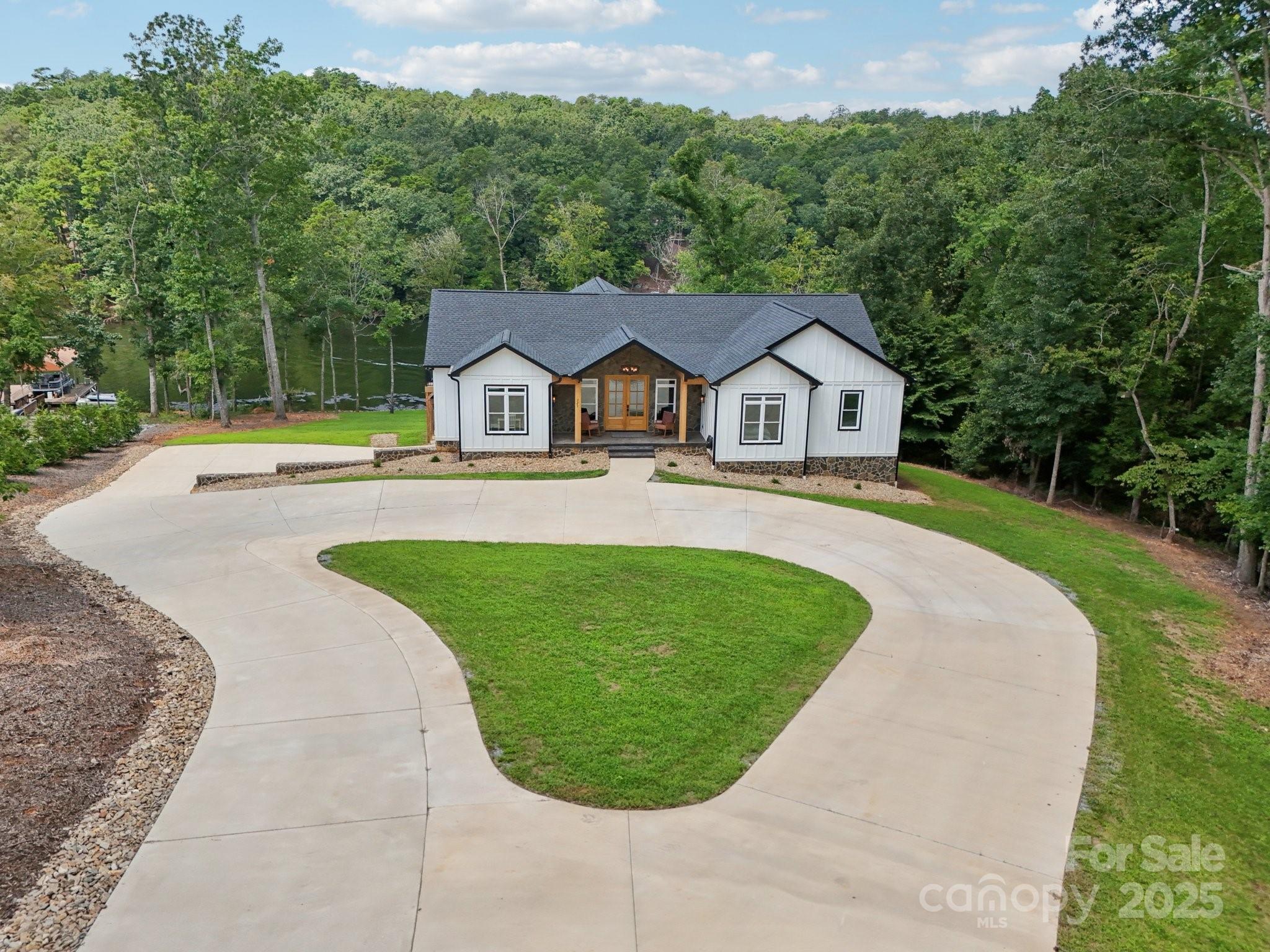 Move-in Ready – Furnished Waterfront Retreat on Badin Lake! This stunning 4BR/3.5BA home is tucked away in a secluded cove within the gated Heron Bay community, offering trails, a clubhouse, and a boat ramp. Designed for entertaining, the open floor plan features a NanaWall folding glass door that seamlessly blends the great room with the screened deck for indoor-outdoor living. The primary suite offers serene lake views, deck access, dual walk-in closets, and an en-suite bathroom. The walk-out basement adds a spacious family room and would also make a great recreation room with French doors to a covered patio. Both patio and deck overlook a gently sloping path to the water and private floating dock with boat lift, and jet ski port—perfect for endless lake days. Quality finishes include Hardie board and batten siding, a stone fireplace, granite countertops in the kitchen and full baths, and European Oak engineered hardwood flooring. Additional highlights include a circle driveway with ample parking and a basement-level 2-car garage. Convenient to Charlotte, Greensboro, and Winston-Salem, with Uwharrie National Forest just 16 miles away, this fully furnished home is ready for you to move in and start enjoying lake life immediately.