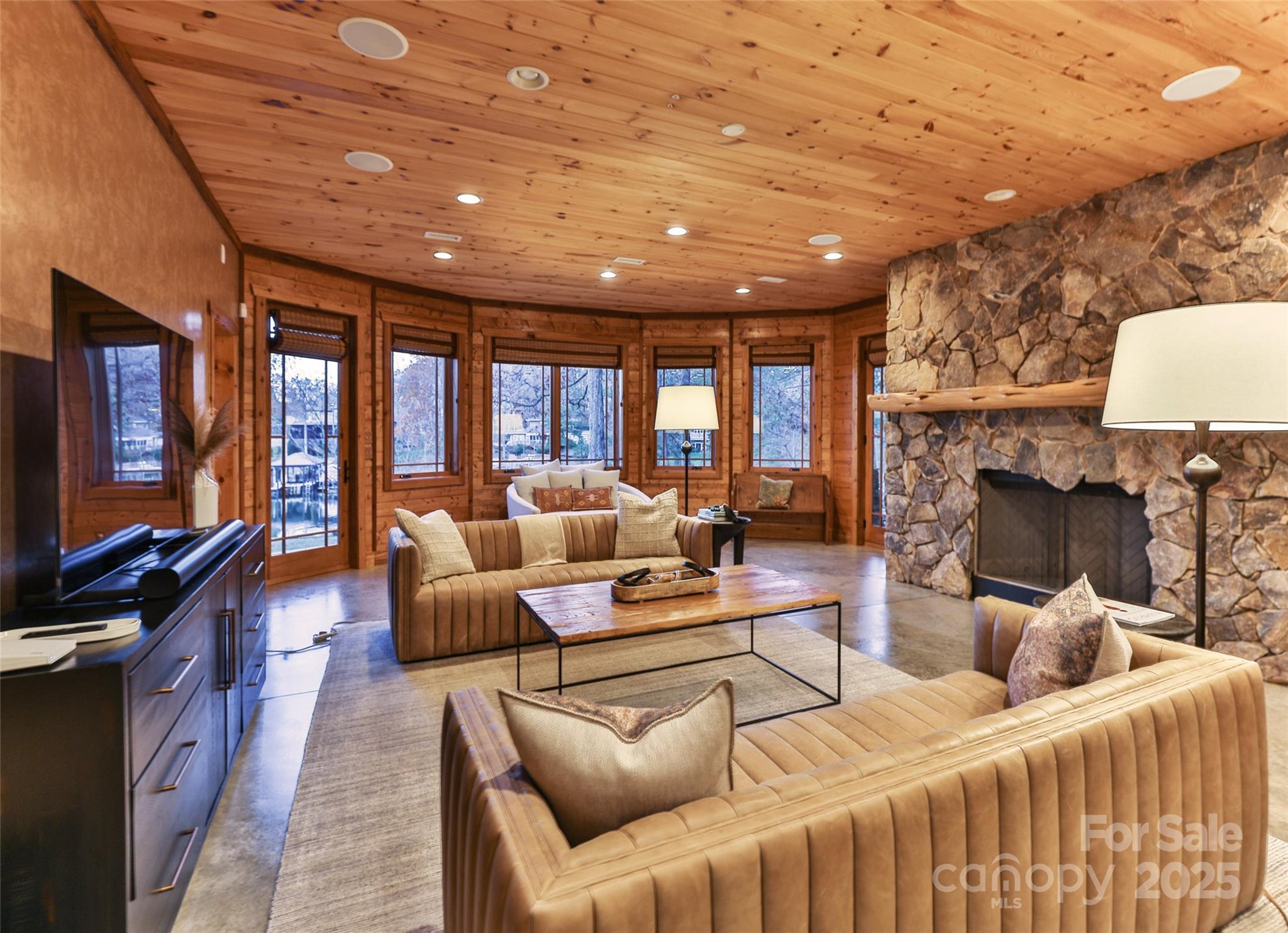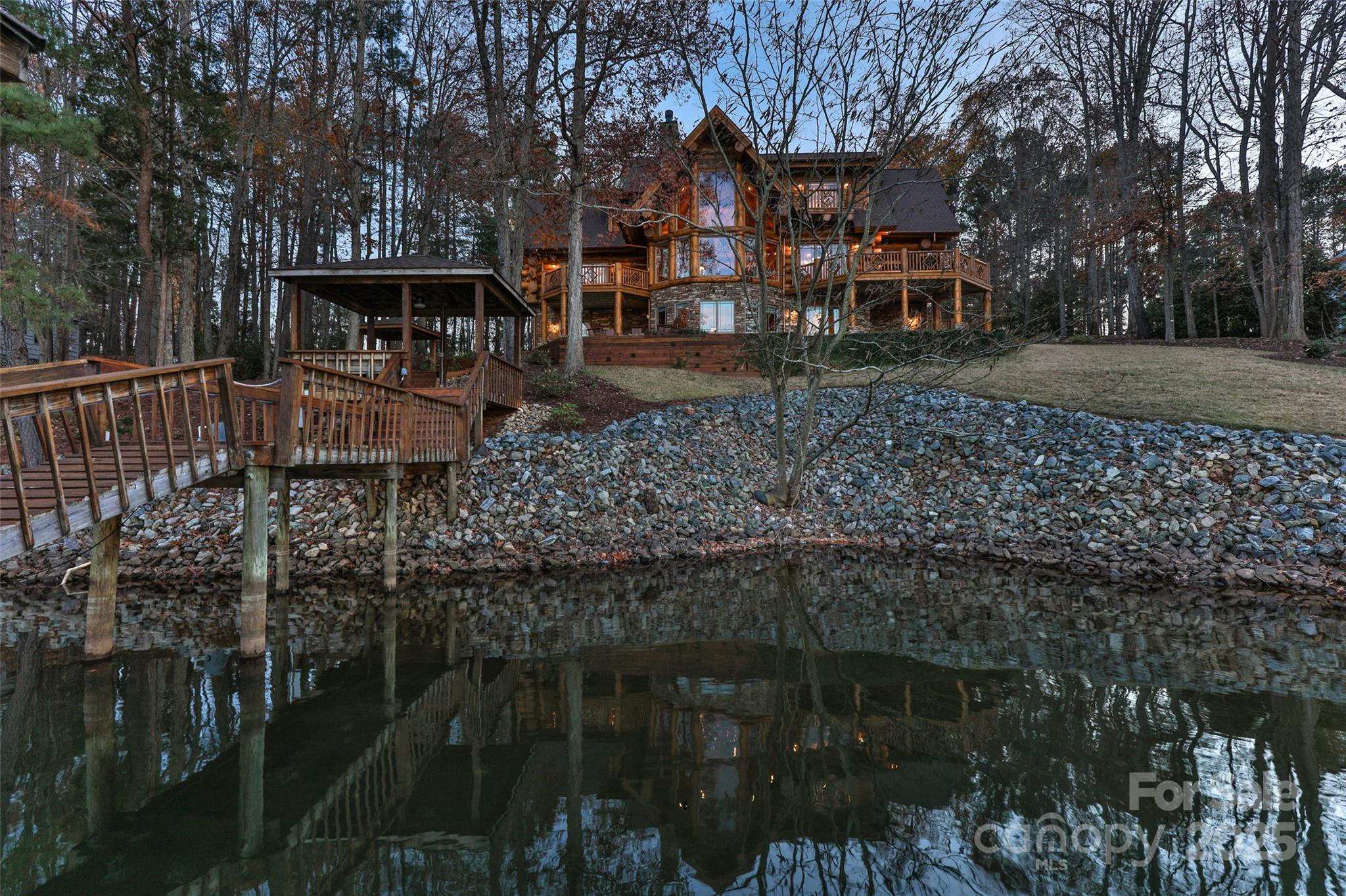 RARE OPPORTUNITY to own the "Timberlake" - a one-of-a-kind luxury Lake Norman retreat. Truly unique in appearance and build, this gorgeous custom log cabin was built with hand hewn eastern white pine and cedar from an old stand of timber in the mountains of Virginia and Tennessee. Currently part of the Inspirato private collection, this handcrafted estate offers both the opportunity of primary living or investment. With curated finishes and outstanding architecture, this home has been meticulously appointed to the most delicate of details and offers stunning waterfront views perched from the expansive decking, living/bedroom spaces and the 3 story window walls in the great room. This show stopping compound provides a 5 star lake experience, 175 feet of shoreline, stone/fire patio area, dock and covered boat slip. Nature abounds this picturesque property where you'll immediately find serenity and relaxation. Close to Trump National Golf Course, restaurants, shopping and more.