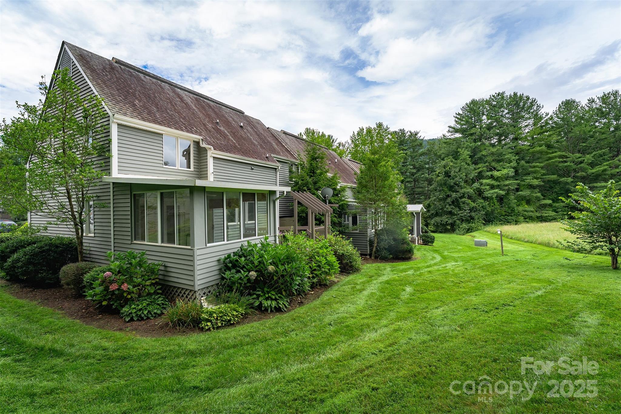 You must see this light-filled, two-story condo at The Lynx Condominiums. This end unit offers excellent privacy and features year-round mountain views, making it a truly desirable location. It's conveniently situated near the Black Mountain Golf Course and provides easy access to downtown Historic Black Mountain's restaurants and shops. The condominium complex includes a clubhouse and an outdoor pool, adding to the amenities available to residents. The unit itself boasts a sunroom with lovely views and is surrounded by well maintained landscaping and green space. For added convenience, the primary bedroom and laundry facilities are located on the main floor. Also, don't miss the extra storage under the stairs and in the upper bathroom. Please note that this unit does require some TLC to bring out its full potential. The seller is offering a $10,000 CREDIT at closing for improvements like new flooring and paint, with an accepted offer.