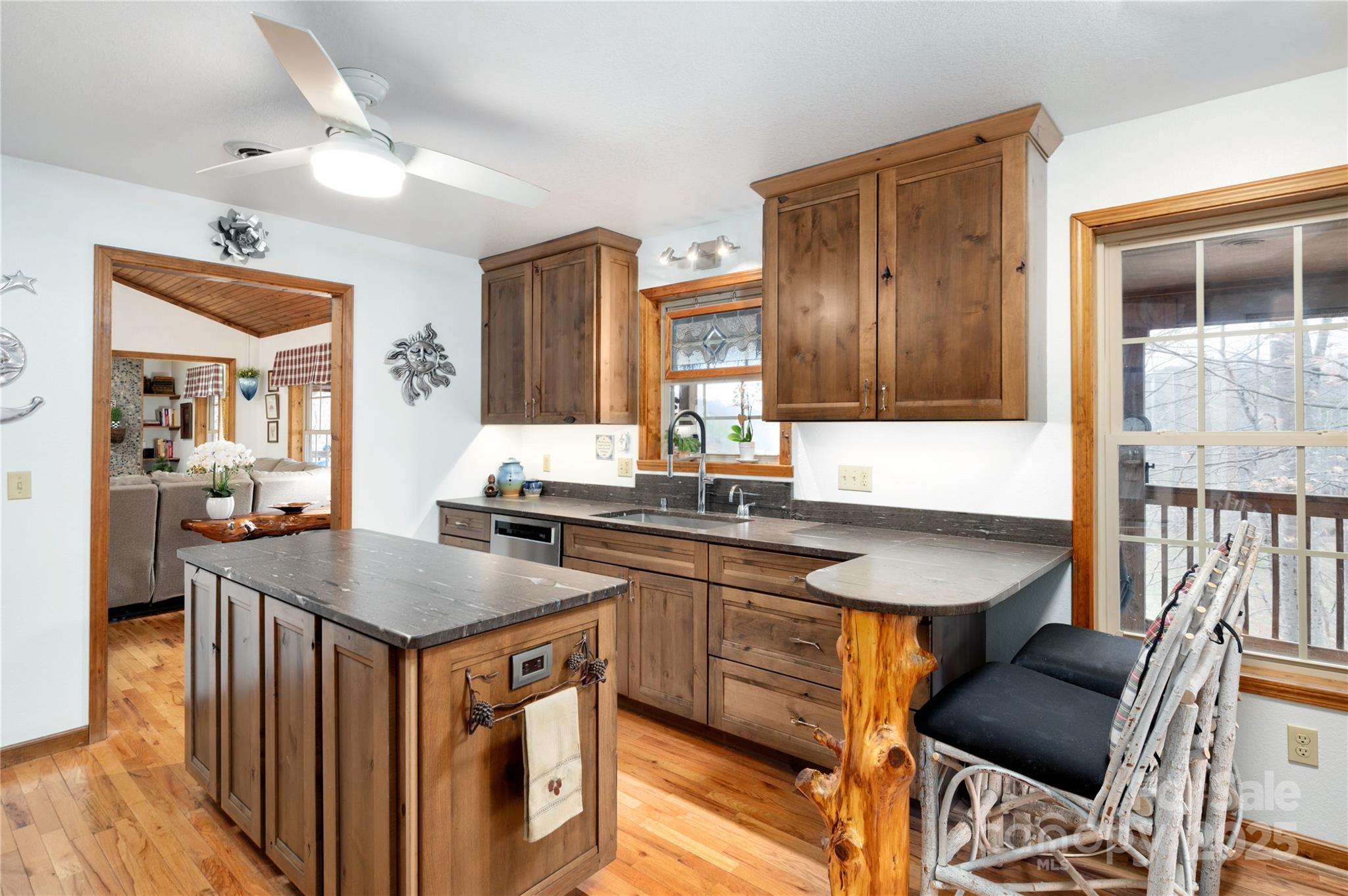 Easy on the eye rustic mountain home with sweeping VIEWS! Located on the RIGHT-SIDE of Burnsville! An easy 30 minutes from downtown Asheville, 15 minutes to Weaverville, and 5 minutes to downtown Burnsville. Breathe in the beautiful, peaceful countryside of Burnsville and the convenience of being close to everything! This is a solid, well built, sweet mountain home! Recently renovated kitchen w/new stainless appliances, great room has a lovely vented gas fireplace and the entire west facing main floor enjoys views of the serene countryside. Grab your coffee or favorite afternoon beverage in the kitchen and head out onto the expansive decks and relax every day to another SPECTACULAR SUNSET! The home is TOTALLY ACCESSIBLE and includes a stairlift and a hydraulic lift to raise groceries up to the main floor. Temperature is controlled on each floor with independent zones. You will NEVER lose power with your GENERAC whole-house back-up generator. THIS IS A MUST SEE!!!