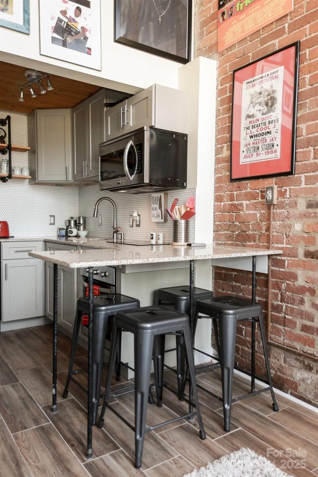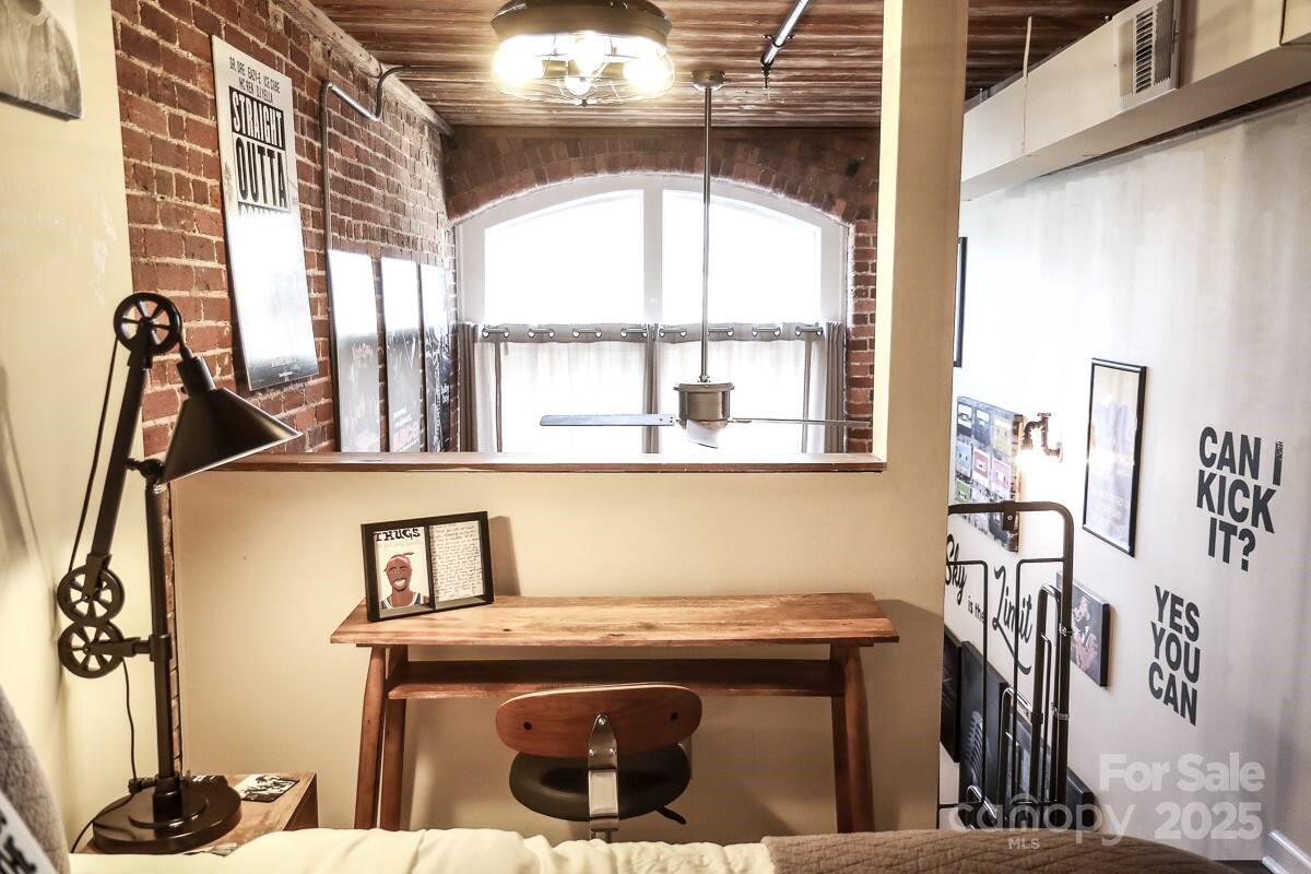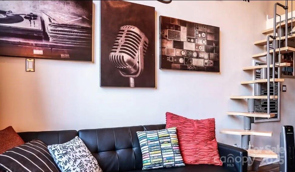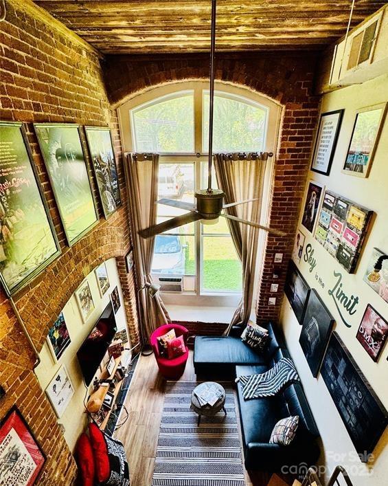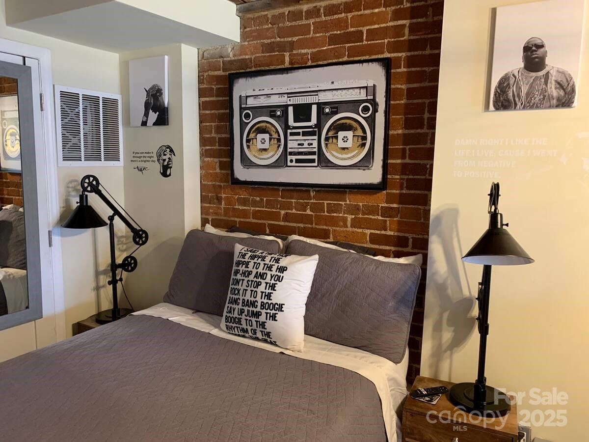 Discover your artistic haven in this beautifully restored, historic mill condo near the vibrant heart of Uptown Charlotte! This charming one-bedroom loft with character and modern conveniences awaits your personal touch. The loft boasts stunning exposed brick walls, adding a touch of vintage charm and creating a unique and chic aesthetic. The modern kitchen is equipped with stainless steel appliances and a stylish breakfast bar, the kitchen is perfect for preparing meals and entertaining guests. Ascend the elegant staircase to your lofted bedroom, which offers a picturesque view of the expansive, two-story Great Room below. This cozy, artsy loft is ideally located, providing easy access to all of Charlotte's excitement and cultural offerings. Everything you need, from bustling markets and trendy cafes to renowned museums and theaters, is just a stone’s throw away.