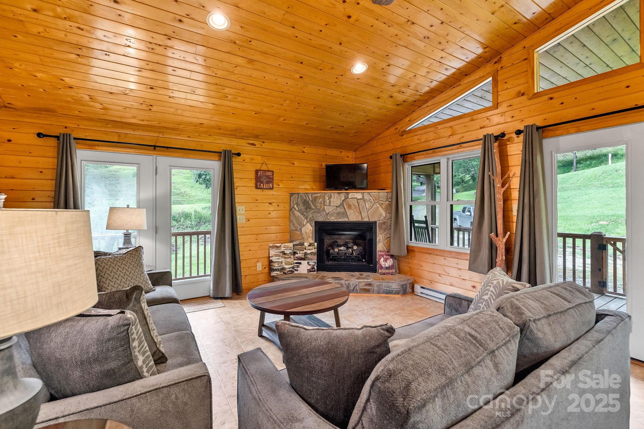 Come see this Adorable Mountain Cottage on 0.7+/- Acres with a beautiful Yard & Pond in the back yard. As you walk through the door, you will be greeted with a beautiful Living room with Vaulted Ceilings a Stone Fireplace with gas logs, Built-in cabinets, French doors to the covered porch, and an open Kitchen / Dining area. Also on the main level is the Primary Bedroom with Full Bath. The entire first floor walls and ceilings have varnished T & G Wood. Enjoy those beautiful summer evenings on the large wrap around porch having dinner or coffee in the mornings all while enjoying the wildlife passing through the yard. The unfinished basement offers unlimited opportunities, already Partially drywalled and nearly ready to finish out, full bath already in place. Walkout to a gorgeous yard where you can sit and relax while soaking up the tranquility of the Mountains! The tranquil stream that meanders to the pond is a bonus to this property. The cabin is being sold Furnished. Call today to see this awesome cabin in the Two River Country gated subdivision, which is centrally located between the quaint towns of Sparta and West Jefferson. This community has a welcoming Common Area on the New River for picnics, fishing, canoeing or kayaking.