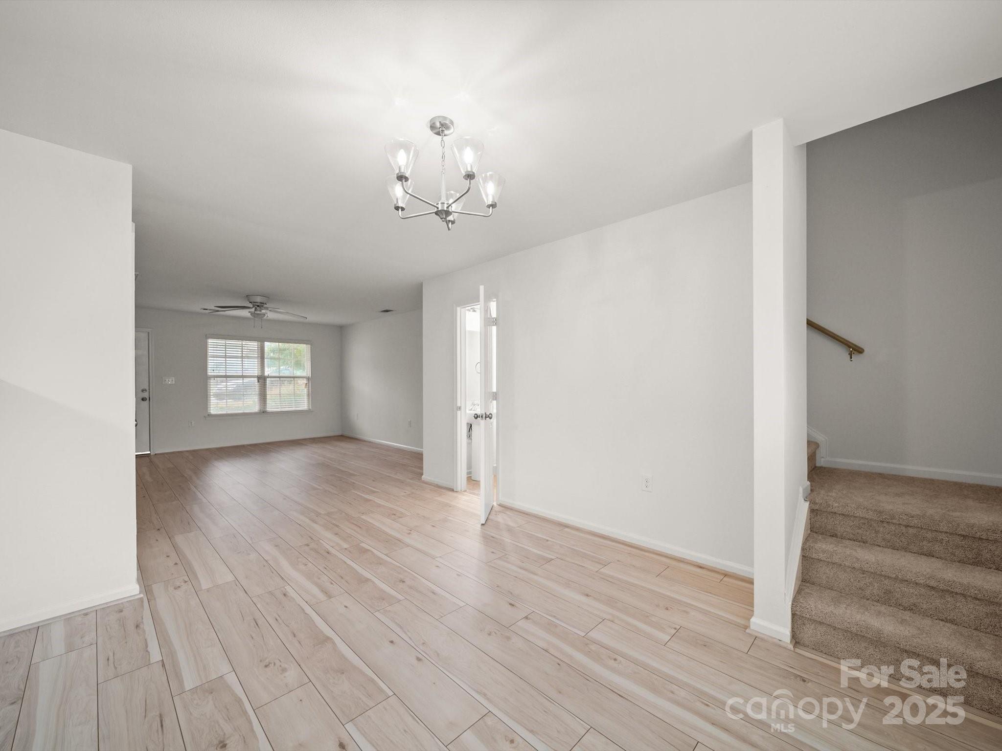 Come check out this beautifully updated, move-in ready 3-bedroom, 2.5-bath home with 1,556 sq ft in Gastonia—conveniently located near I-85! The main level features an open floor plan with brand-new hardwood floors, perfect for entertaining. The kitchen includes a raised countertop ideal for barstools—enjoy your morning coffee with a view of the backyard. Upstairs, you’ll find all-new carpet throughout, three spacious bedrooms, and two full bathrooms. The primary suite offers a soaking tub, separate shower, and a large walk-in closet. The laundry room is also upstairs for added convenience—no more carrying laundry up and down the stairs! Additional updates include fresh paint and new lighting fixtures in all bathrooms and the kitchen, giving the entire home a clean, modern feel.