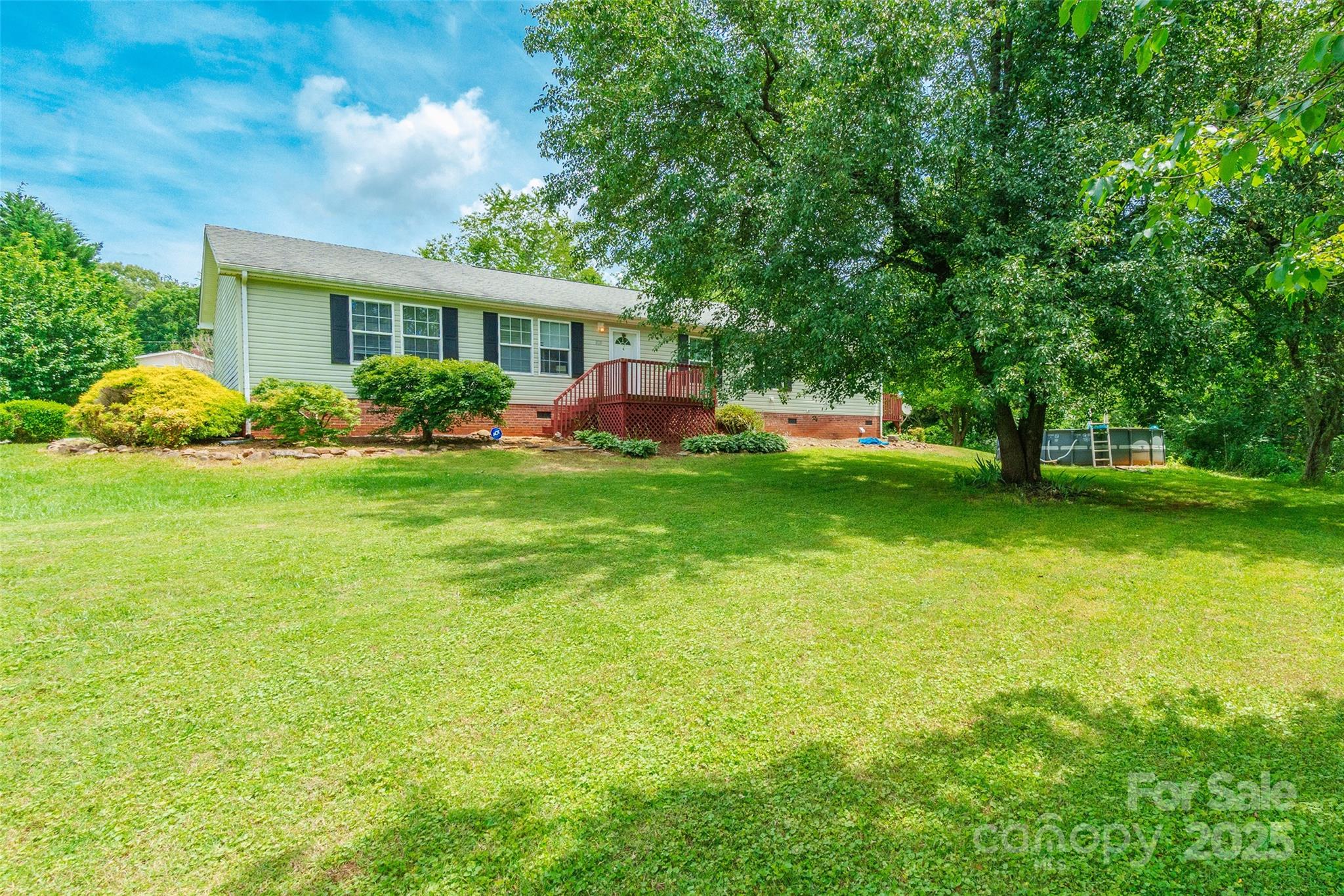 Situated on nearly an acre land, this 3 bedroom, 2 bath home offers a spacious and functional layout with great outdoor features. The kitchen includes stainless steel appliances, a center island, and pantry, and flows directly into the dining area. A stone fireplace brings warmth and charm to the den. The primary suite features a dual vanity, garden tub, and separate shower. Step outside to enjoy the partially covered patio, deck, above ground pool, and storage shed. Enjoy the freedom and flexibility that comes with no HOA. Offering seller concessions to help with buyer closing costs—reach out for details!