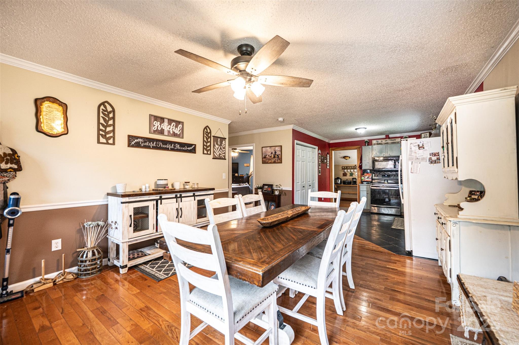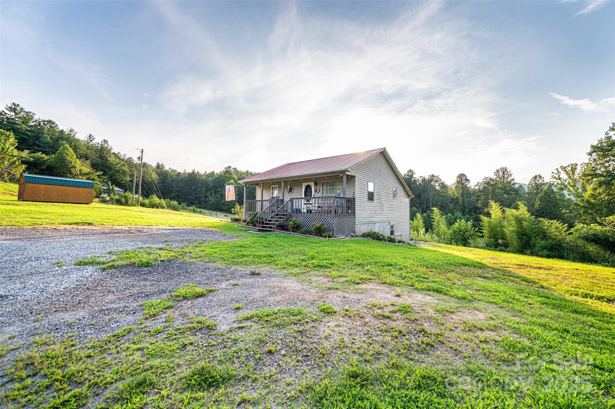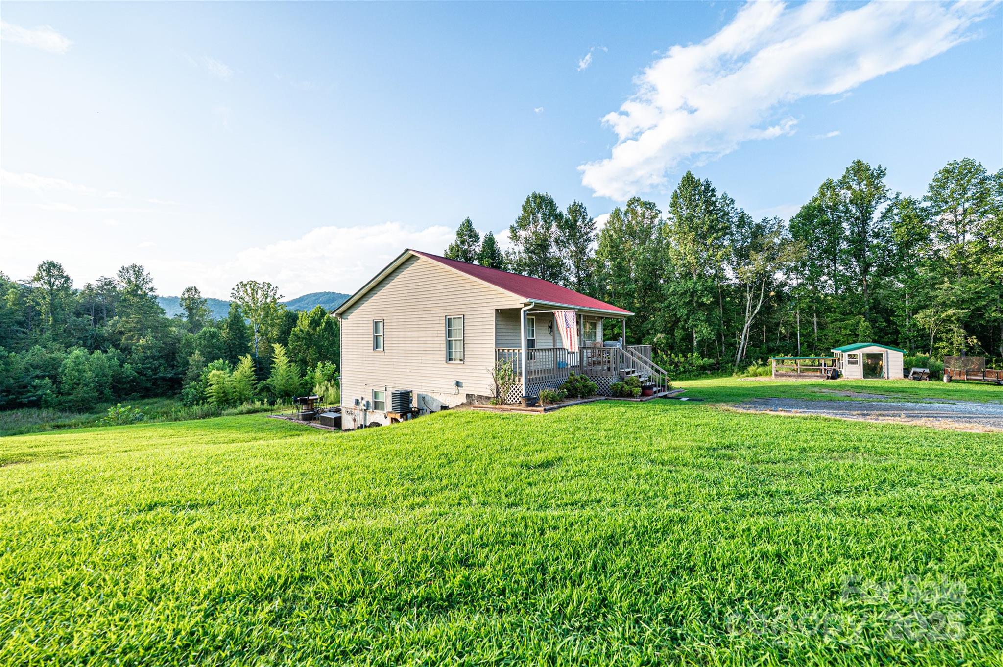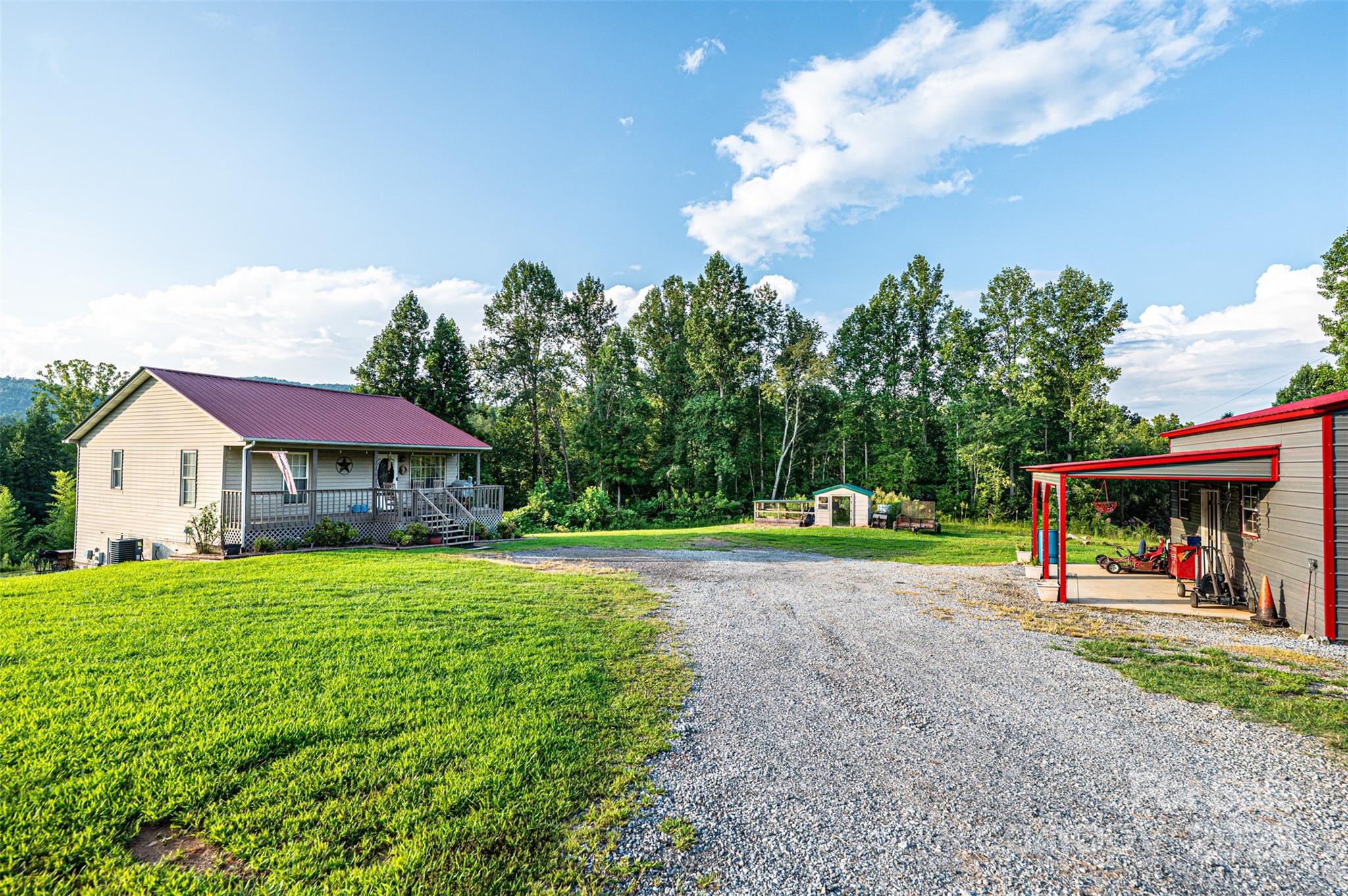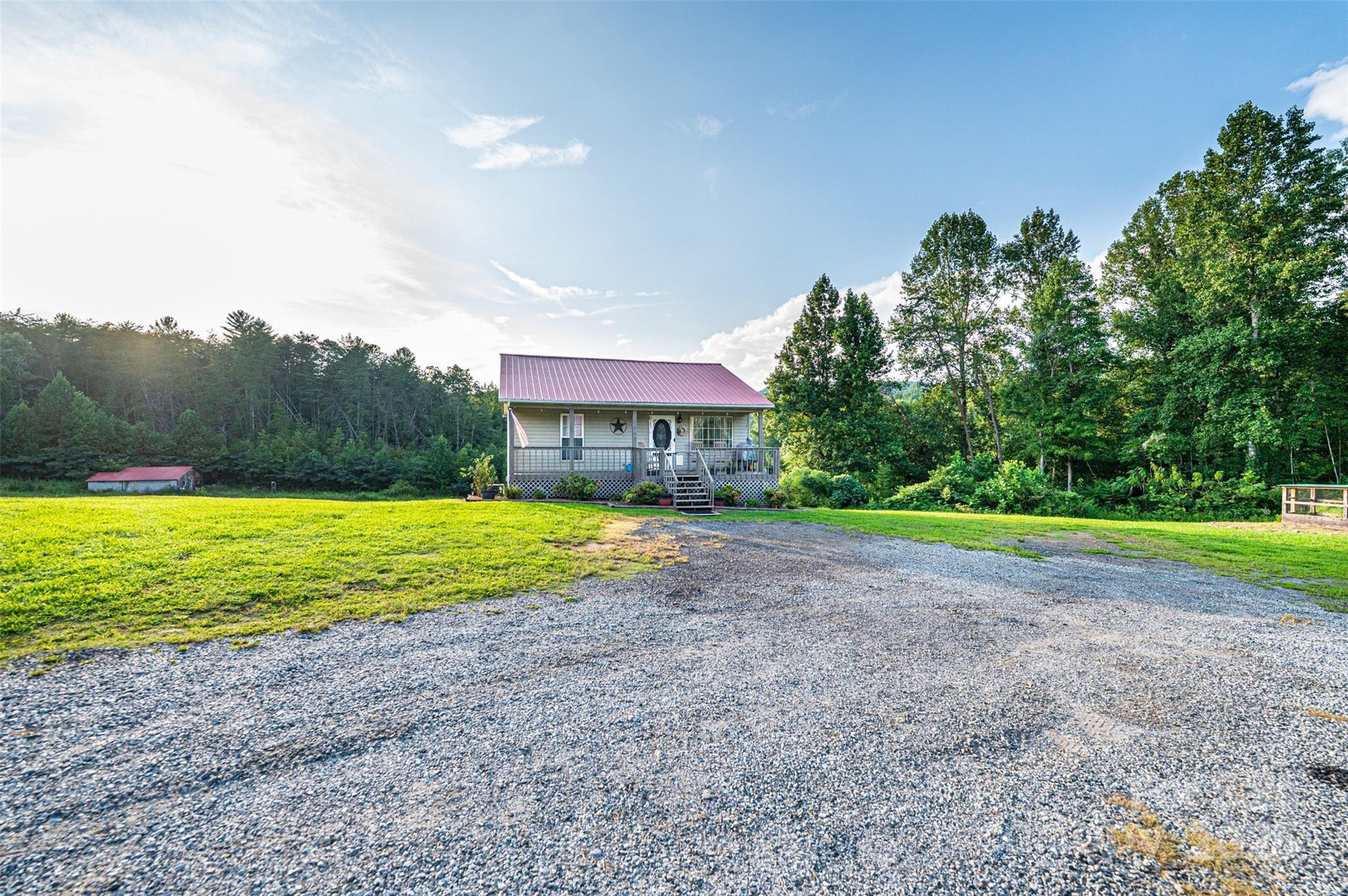 Escape to peace and privacy with this 2-bedroom, 2-bath home featuring a finished basement and bonus room currently used as a third bedroom. Nestled on a 3.66 acre property offers the perfect blend of comfort and rural charm. Enjoy your mornings on the covered front porch, unwind in the hot tub, and take advantage of the spacious metal outbuilding—ideal for a workshop, storage, or hobby space. The home features a metal roof for added durability and low maintenance. Inside, you'll find a warm, inviting layout with ample living space and flexible room options. The kitchen is fully equipped with a range, refrigerator, and microwave. The finished basement provides additional living or recreational space, perfect for guests or a home office. This is a rare opportunity for serene, country living—only a short drive from town conveniences, but with all the privacy you could want.